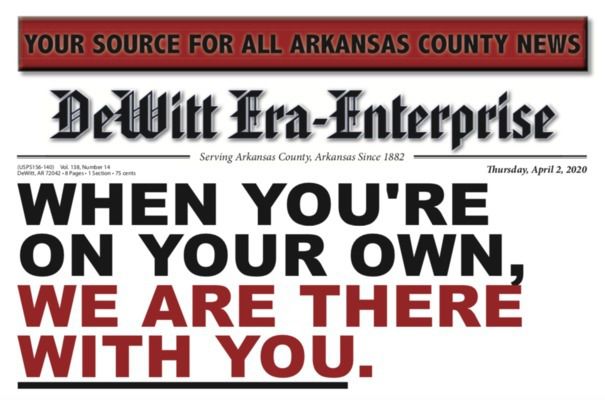 Together, across the decades, the DeWitt Era-Enterprise and its readers have navigated many horrific events, though this is greater than any of those, but, rest assured, we will be here for you. Arkansas County is a resilient city where people come together to build and rebuild. If we all stick together as a community, we will come through this, too.